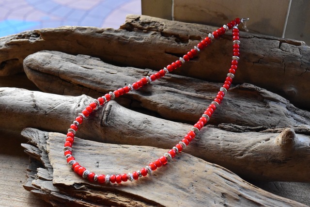 ホワイトハーツ×SVビーズ ネックレスは、鮮やかな赤のホワイトハーツビーズと上品なシルバービーズが巧みに組み合わさった、洗練されたデザインのアイテムです。シンプルでありながらも存在感が際立ち、デイリーユースから特別な日まで幅広いシーンで魅力を引き立てます! ホワイトハーツビーズの独自の光沢感が首元を美しく演出し、シルバービーズとの絶妙なコントラストが存在感を増しています。どの角度から見てもスタイリッシュに映えるこのネックレスは、見る人を惹きつけ、印象的なアクセサリーとして活躍することでしょう。 -------------------------------------------- 【サイズ】 全長約45cm、ビーズ直径約8mm 【素材】 ホワイトハーツビーズ、シルバー925 -------------------------------------------- ※サイズやデザインに関するご要望は、お気軽にお問い合わせください。 ※ホワイトハーツ×SVビーズ ネックレスの写真は、実物の色をできる限り忠実に再現しておりますが、モニター環境によっては実際の色味と異なる場合がございます。