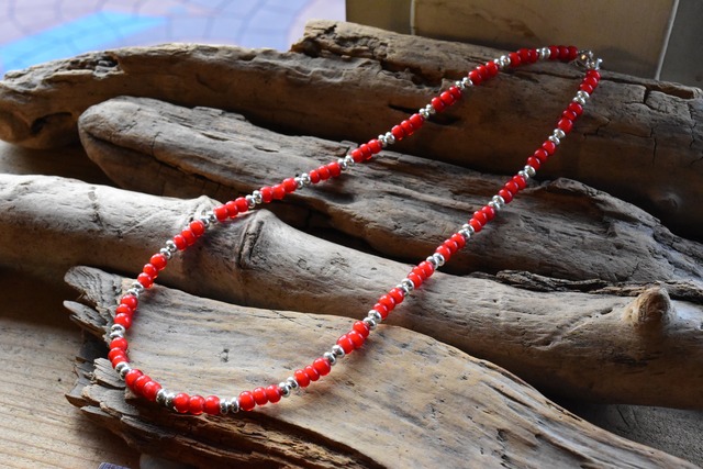 【現品一点限り】ホワイトハーツ(濃赤)×SVビーズ ネックレス②