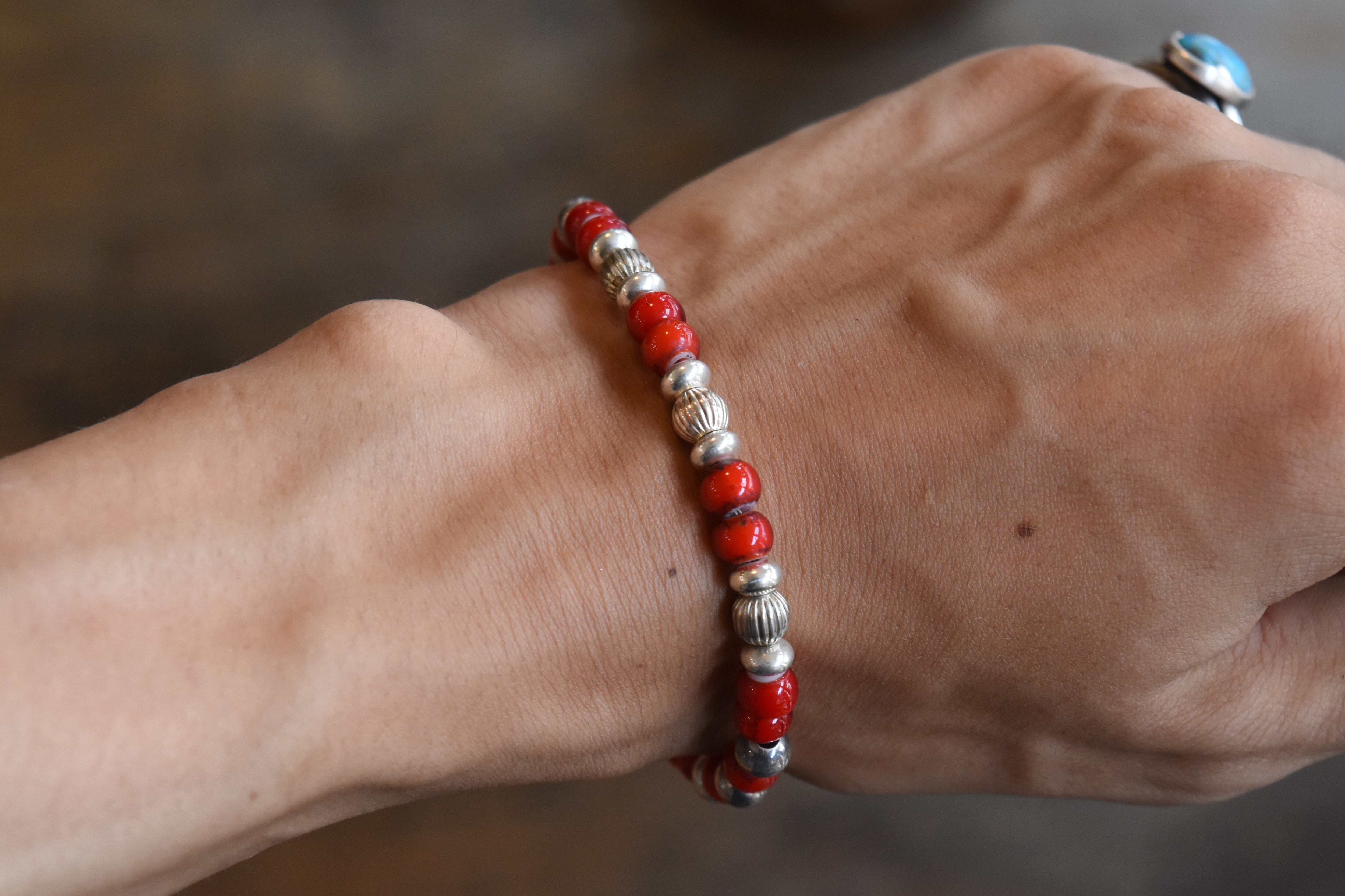 ホワイトハーツ×SVビーズブレスレットは、繊細なホワイトハーツビーズと輝きを放つシルバービーズが美しく融合した、特別な魅力を持つブレスレットです。日常のカジュアルなスタイルに加え、特別な場面でも引き立つお洒落なアクセントを演出します!