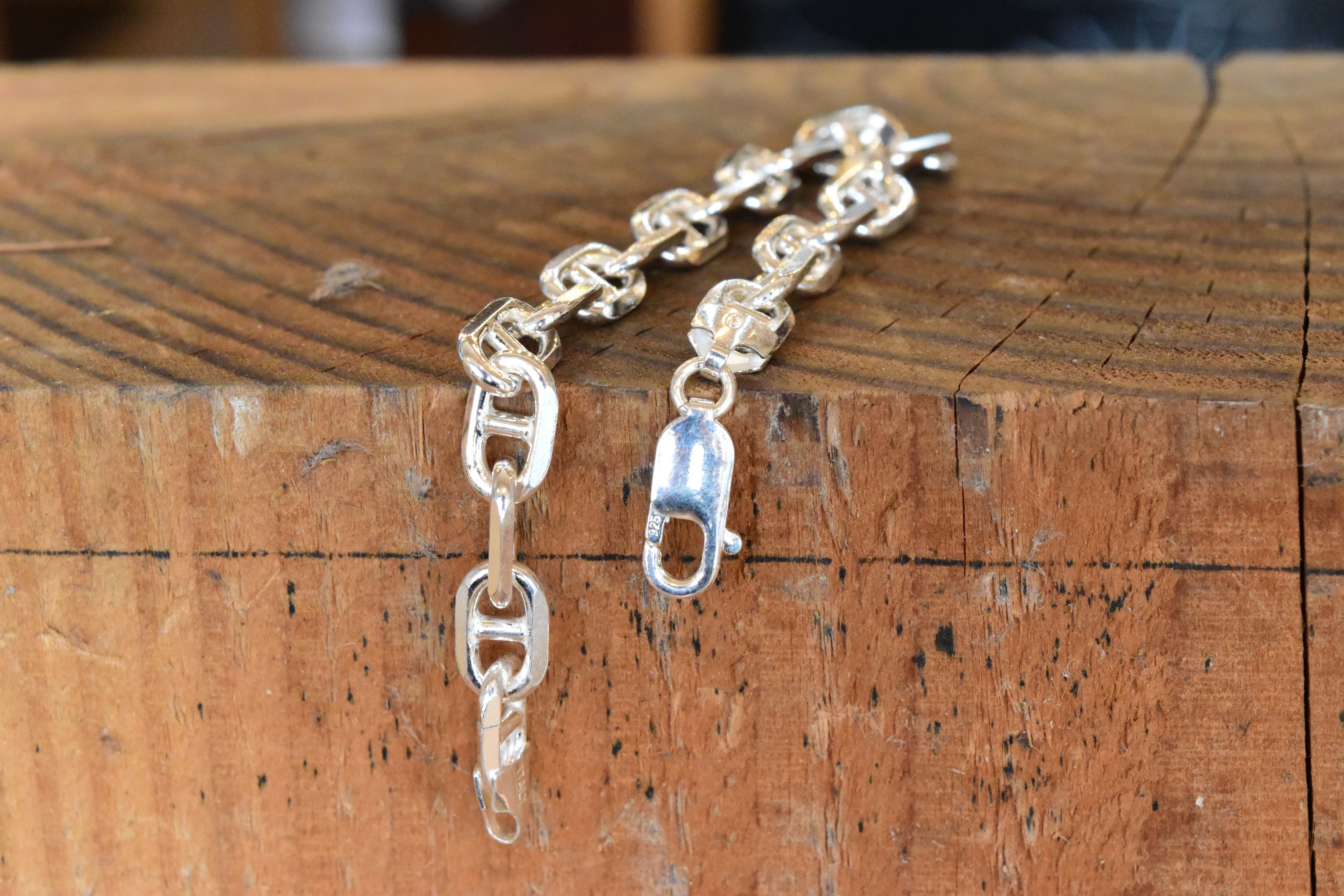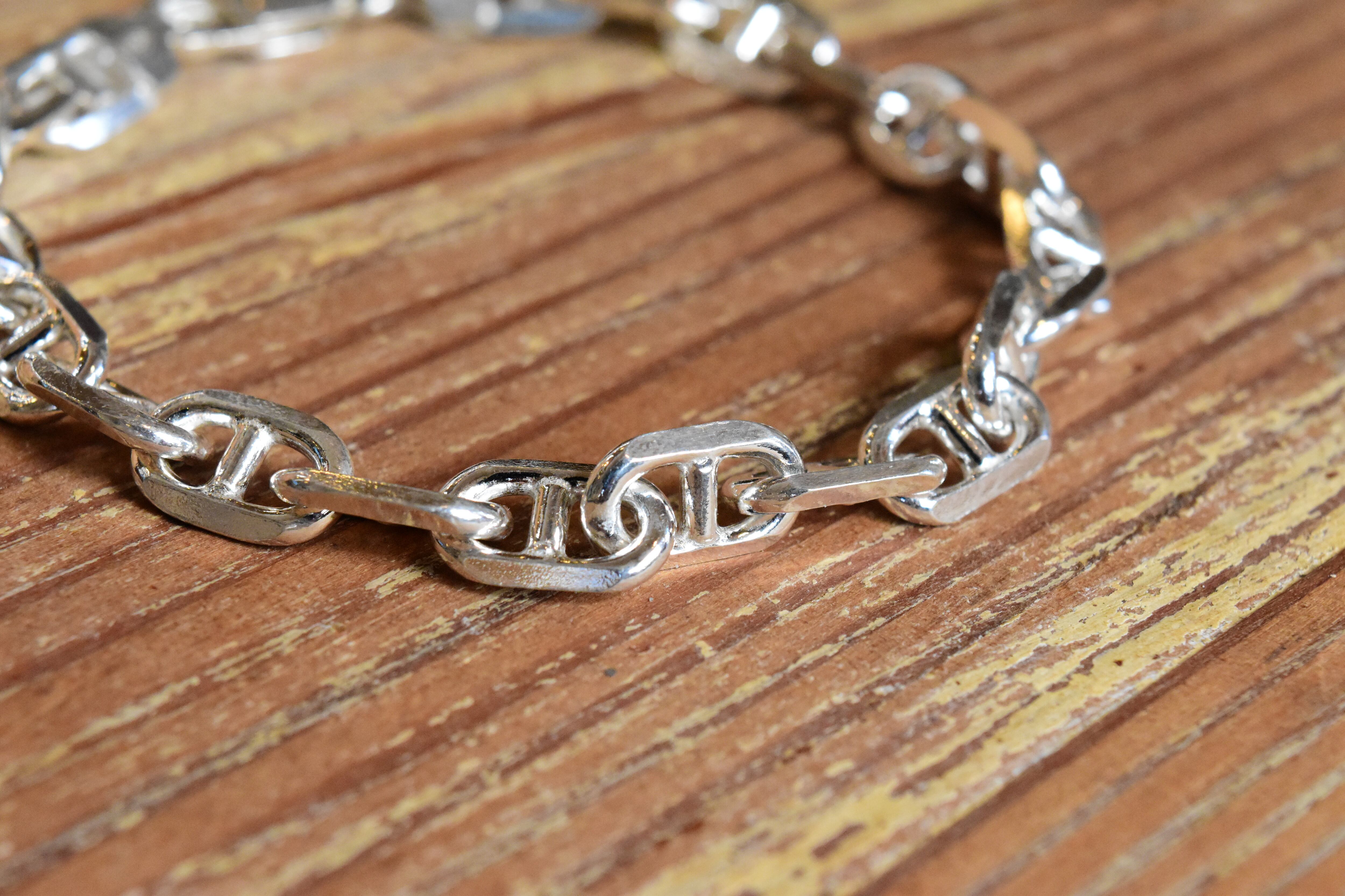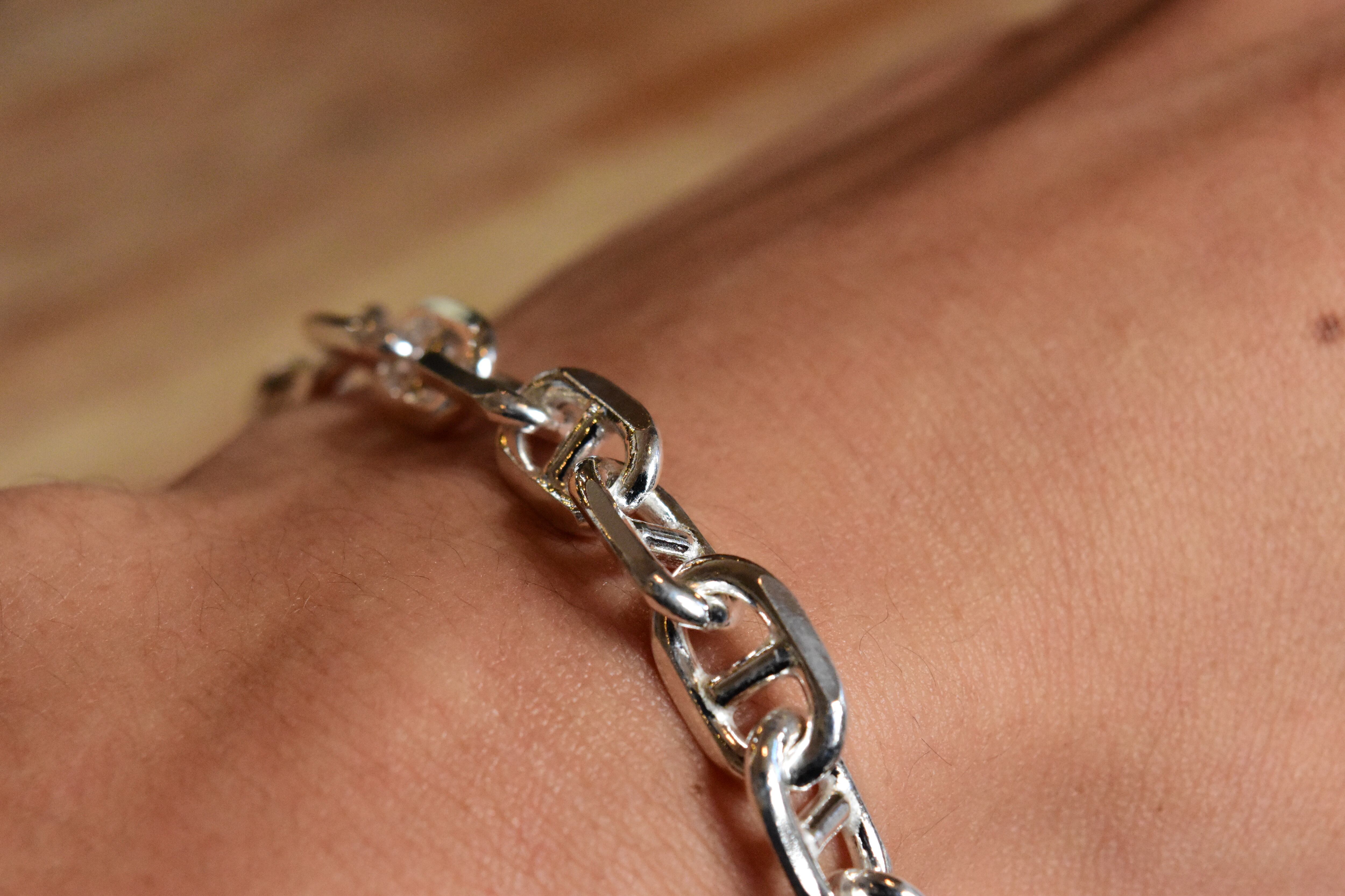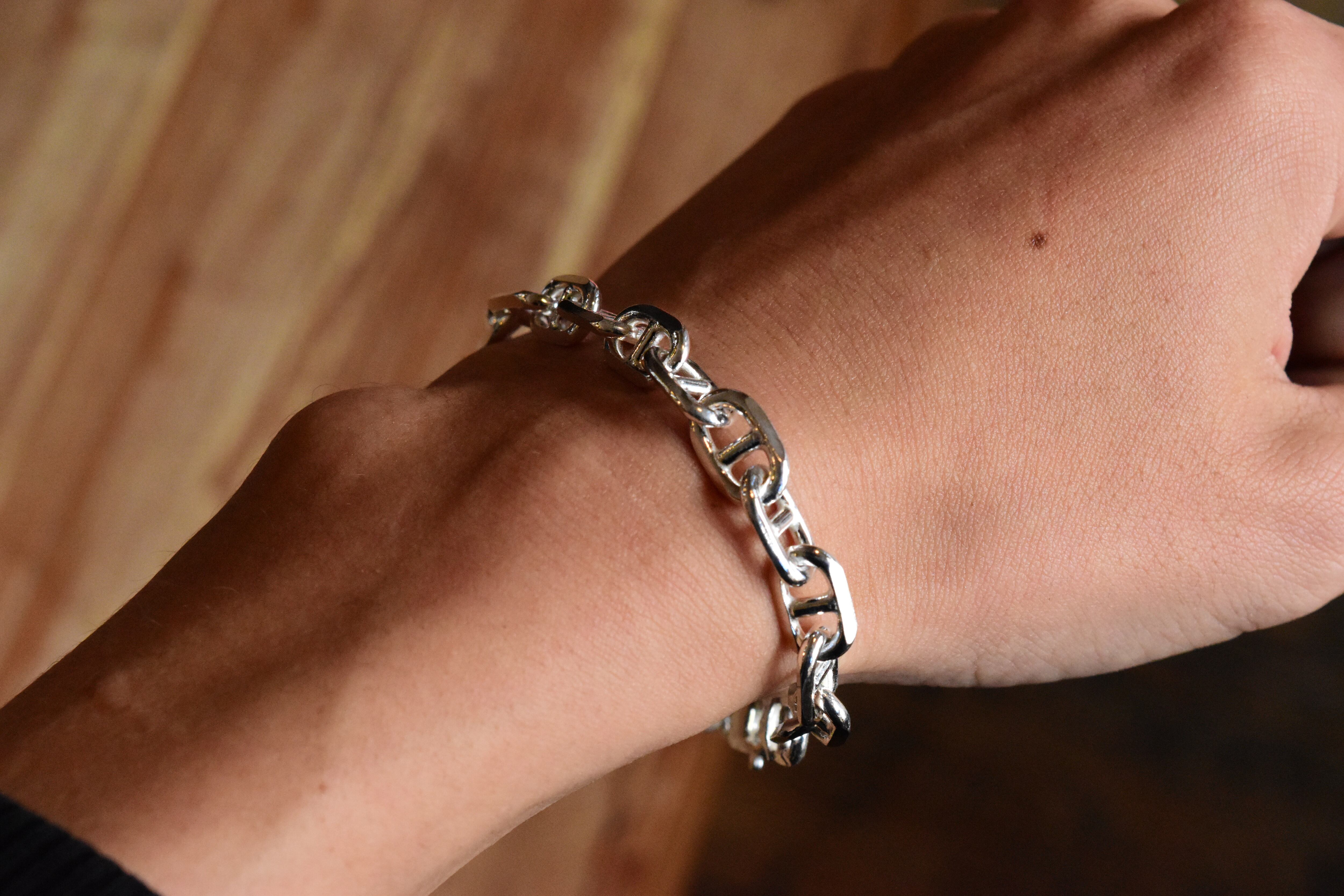 シンプルでありながらも、洗練されたデザインが魅力の【7.5mm幅】アンカーチェーンブレスレット。ユニークなアンカー形状のリンクが特徴的で、手元に絶妙なバランスの美しさをもたらし、さまざまなスタイルに合わせてお楽しみいただけます!