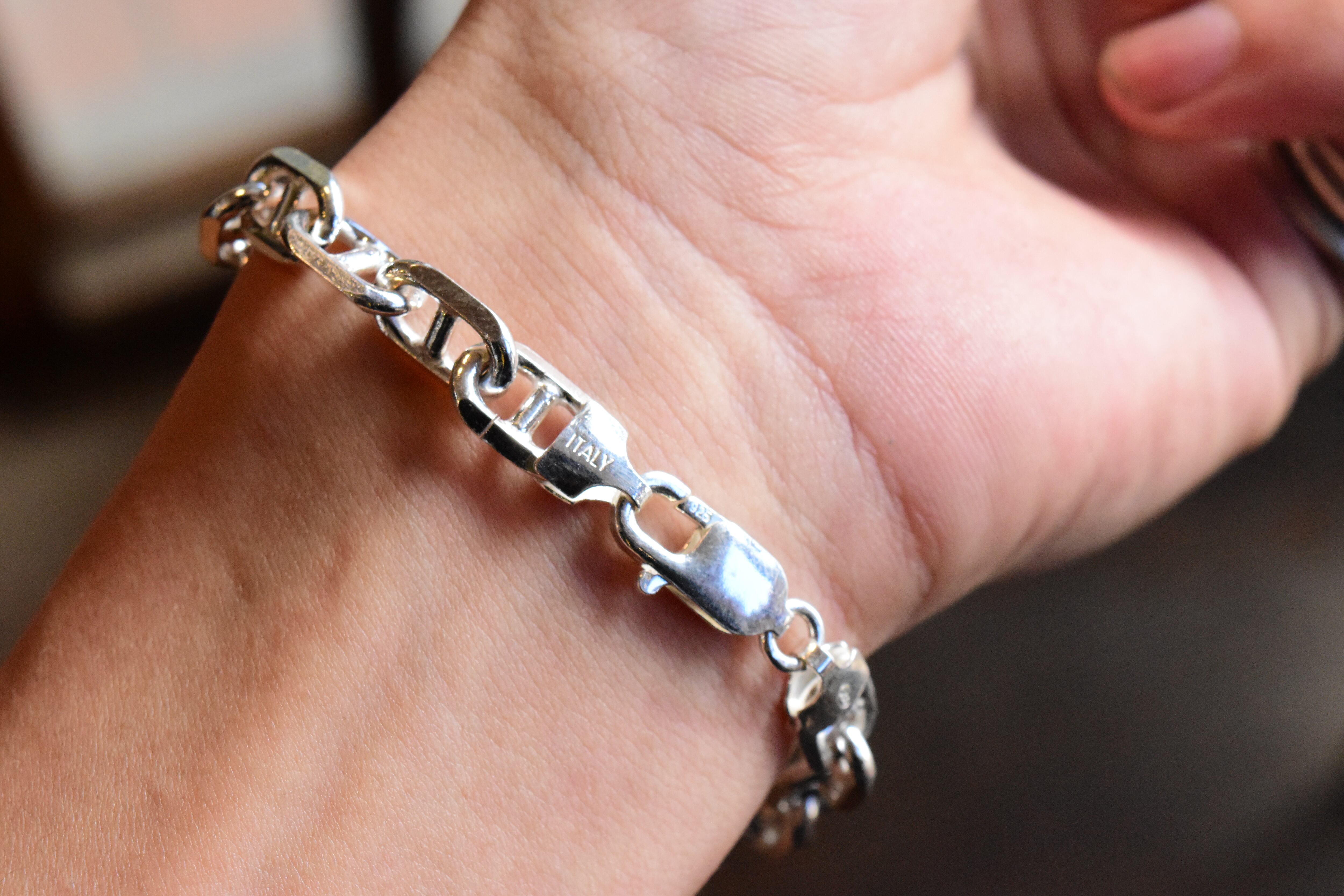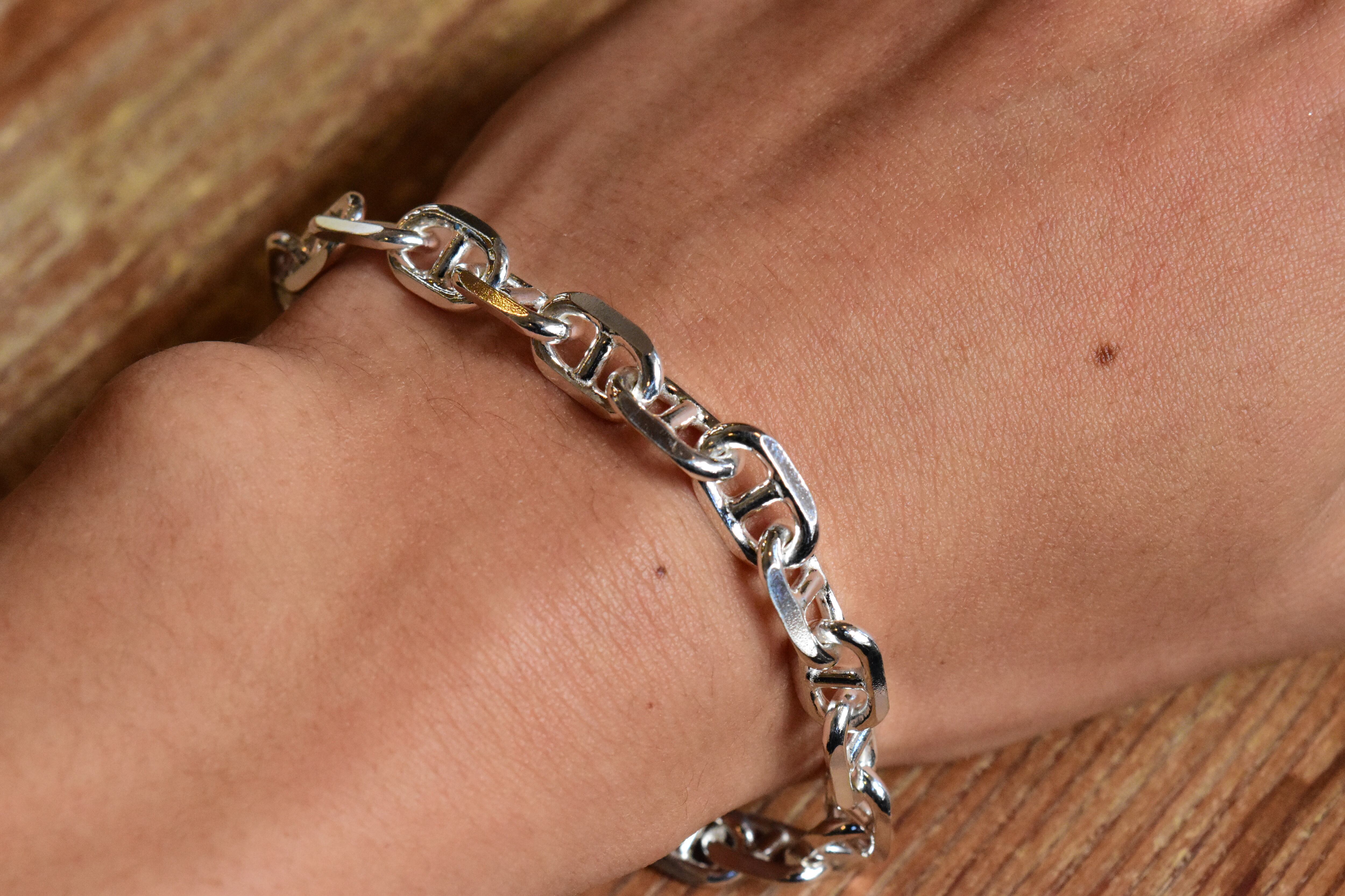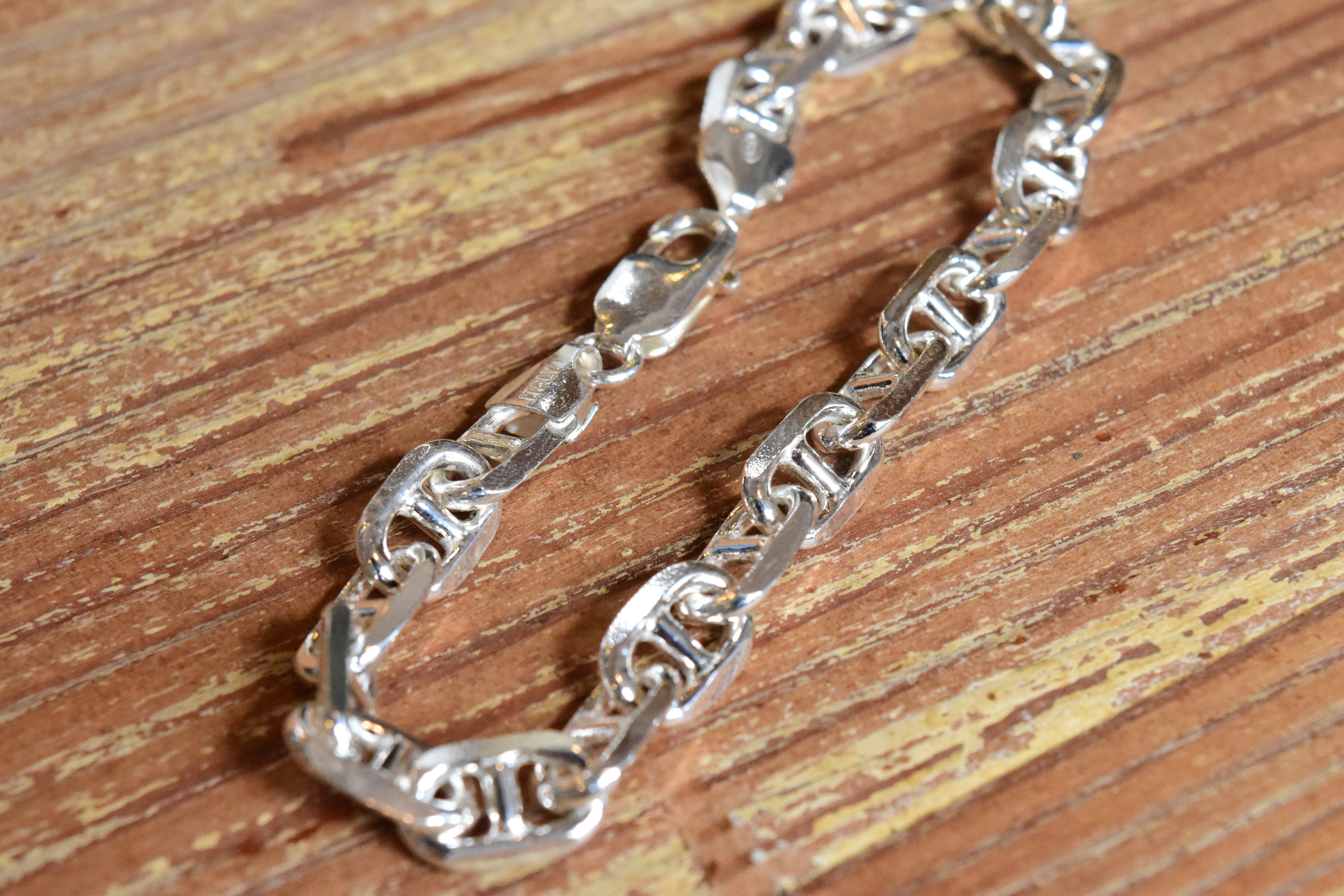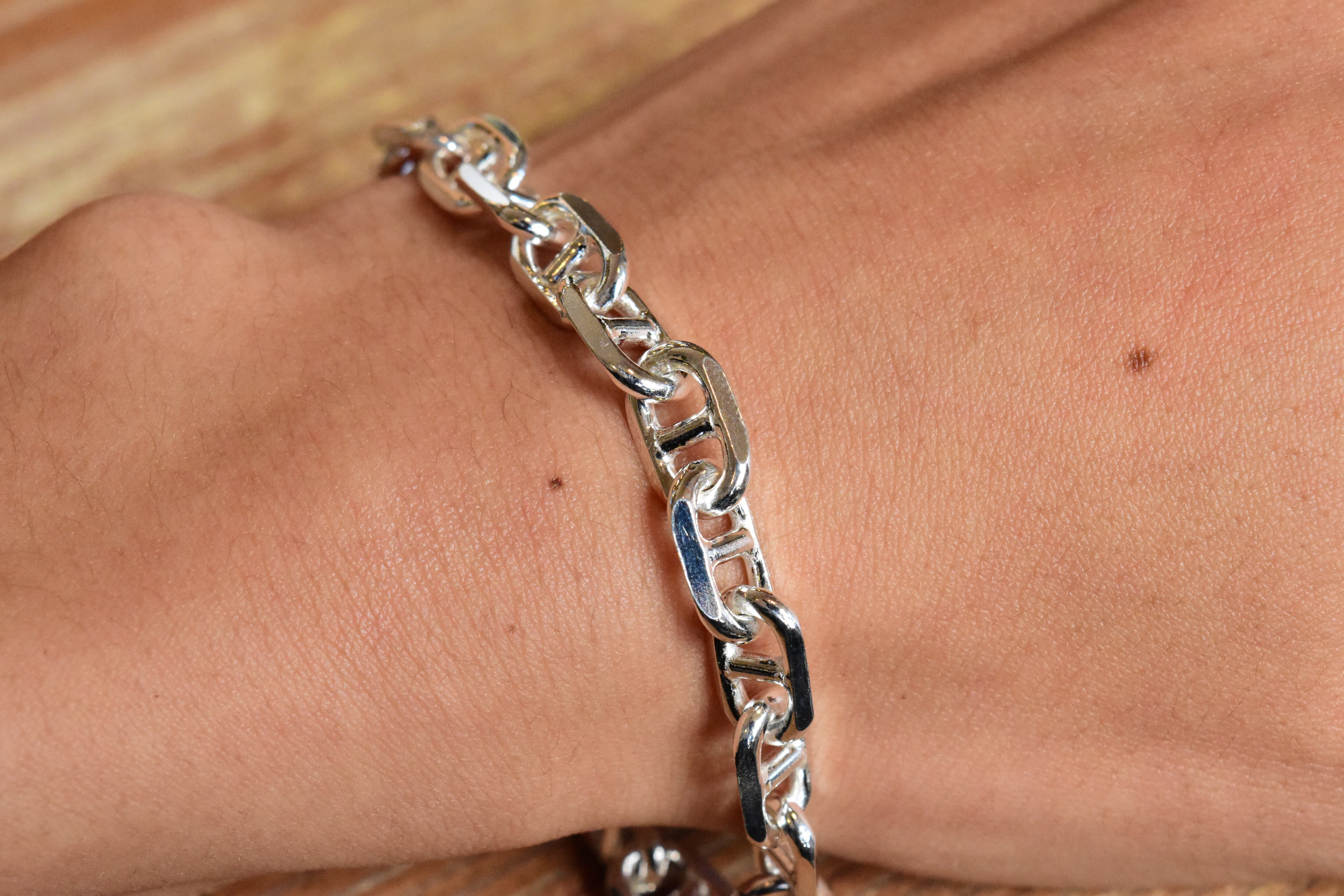 シンプルでありながらも、洗練されたデザインが魅力の【7.5mm幅】アンカーチェーンブレスレット。ユニークなアンカー形状のリンクが特徴的で、手元に絶妙なバランスの美しさをもたらし、さまざまなスタイルに合わせてお楽しみいただけます!