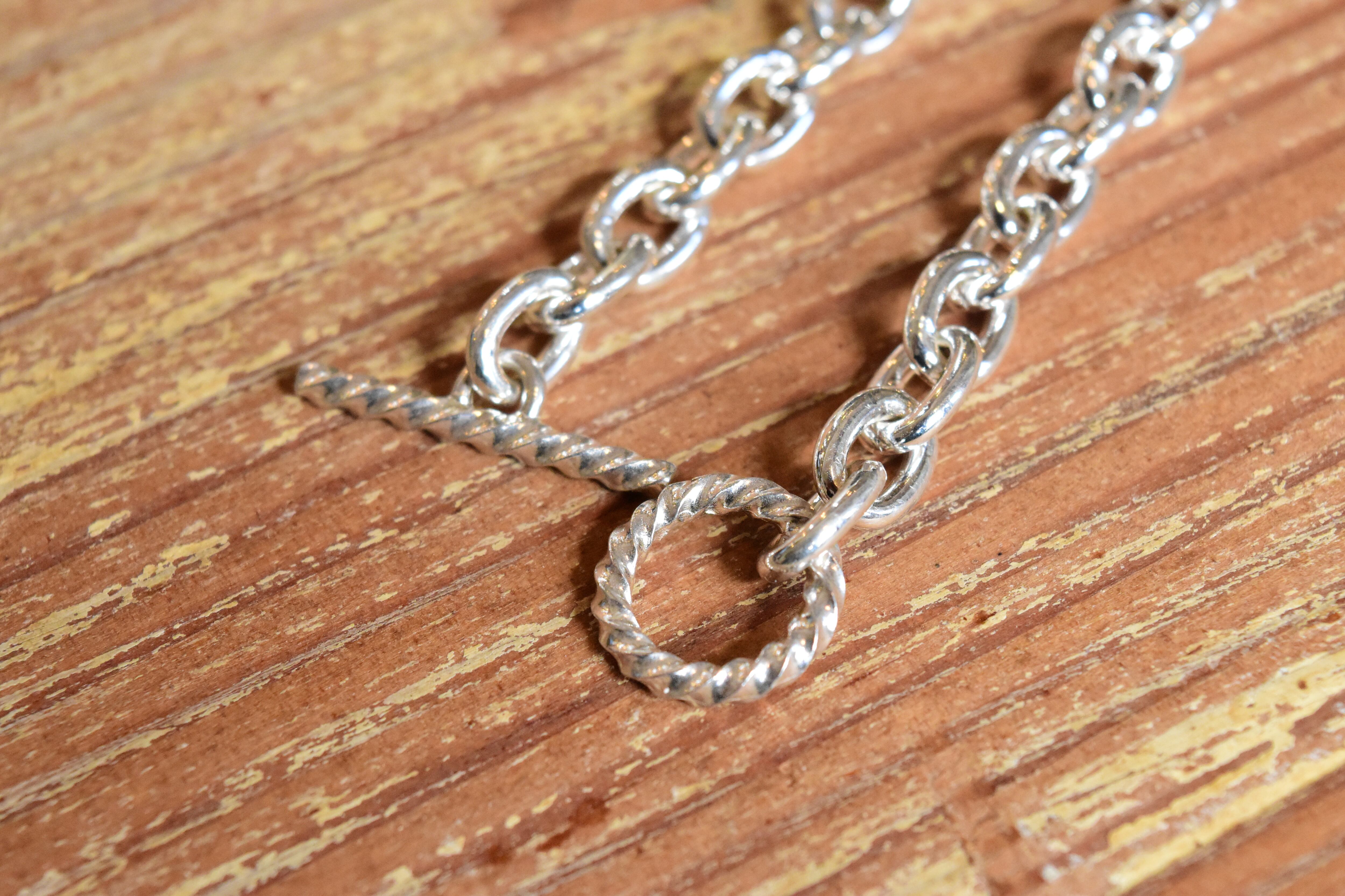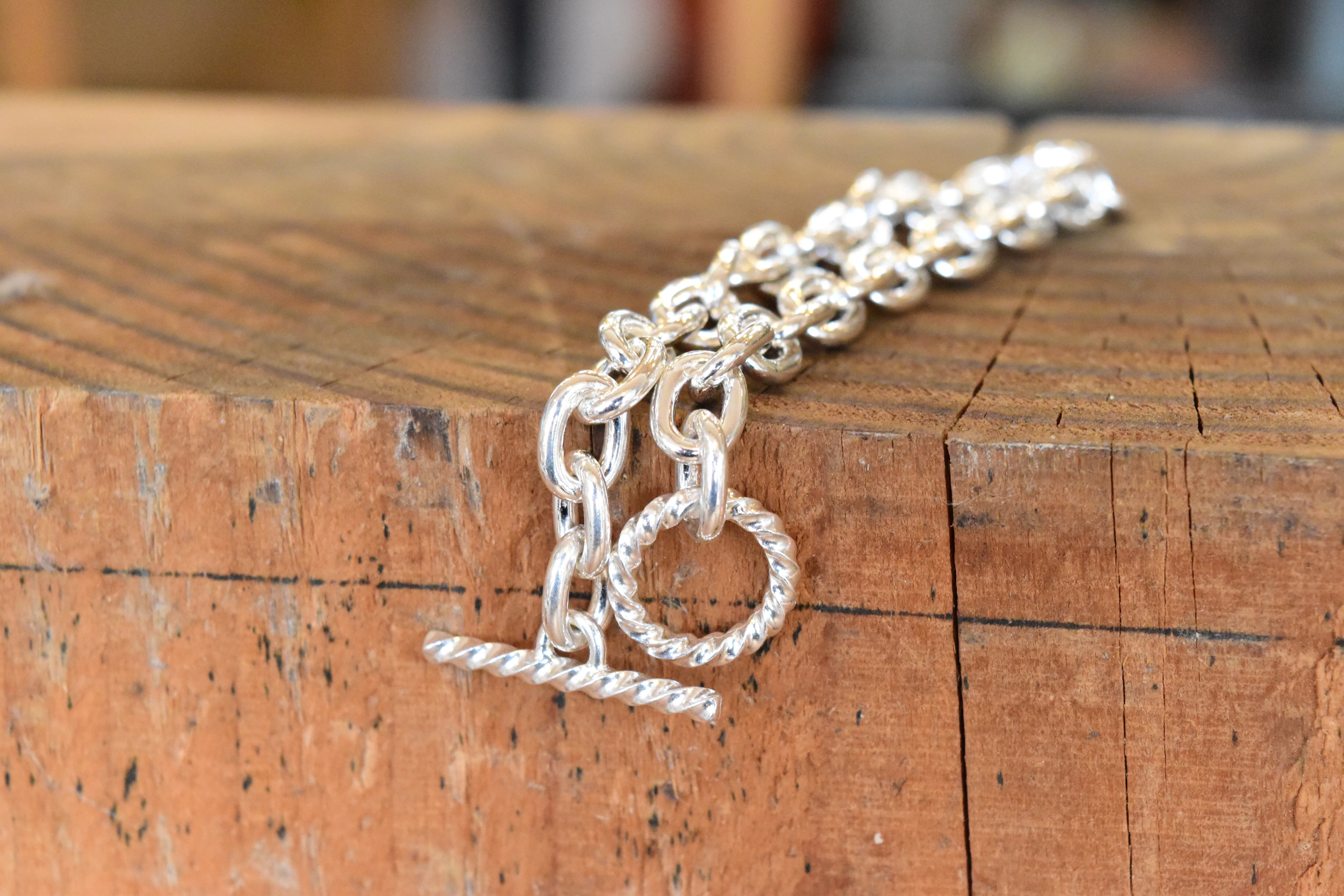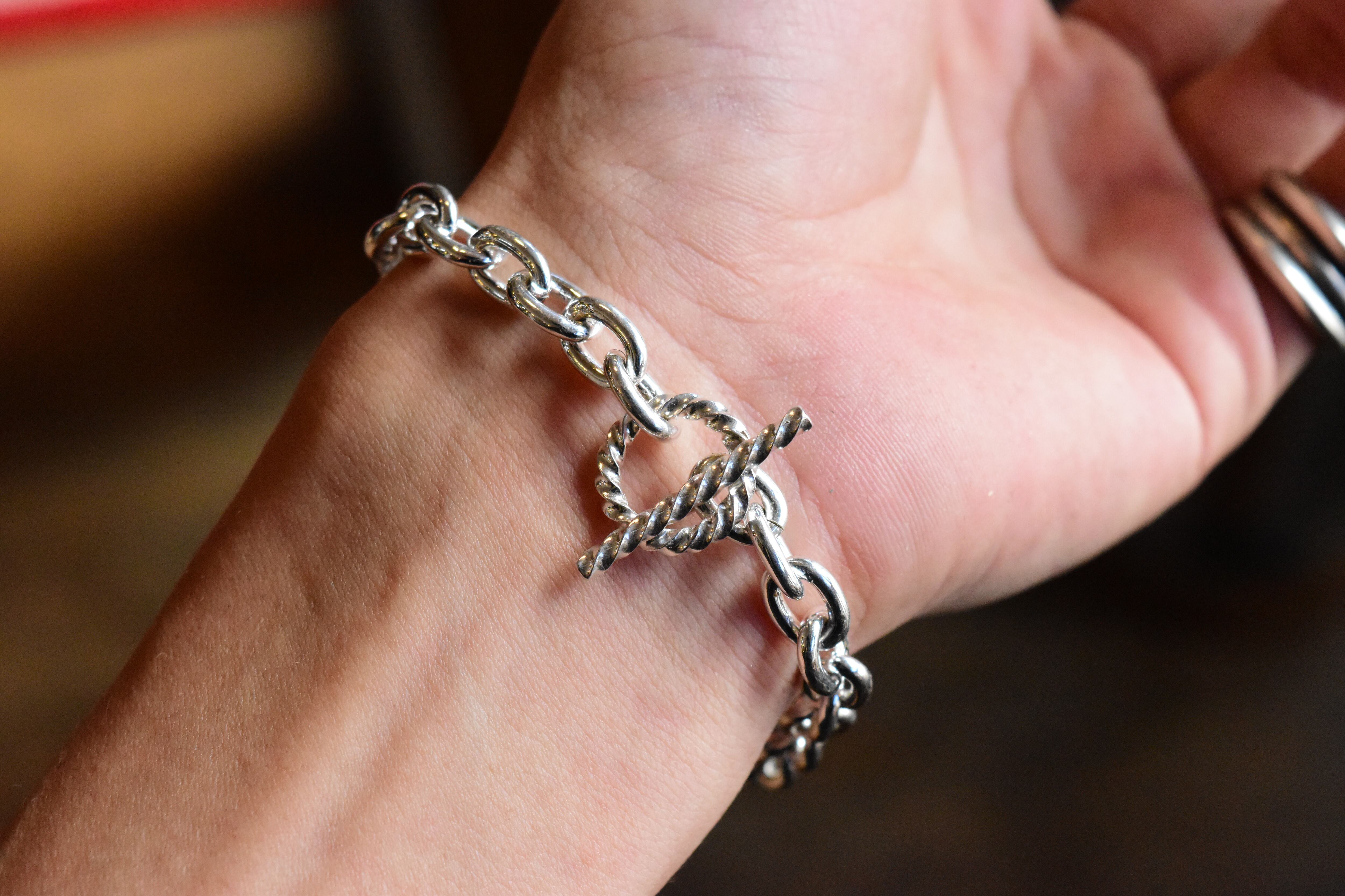 贅沢に使用された地金は、しっかりとした質感を維持しつつ、軽やかに身に着けられるしなやかさも兼ね備えています。丁寧な仕上げが施されたこのブレスレットは、カジュアルな日常使いから特別なシーンまで、その美しさで周囲の視線を集めることでしょう。
