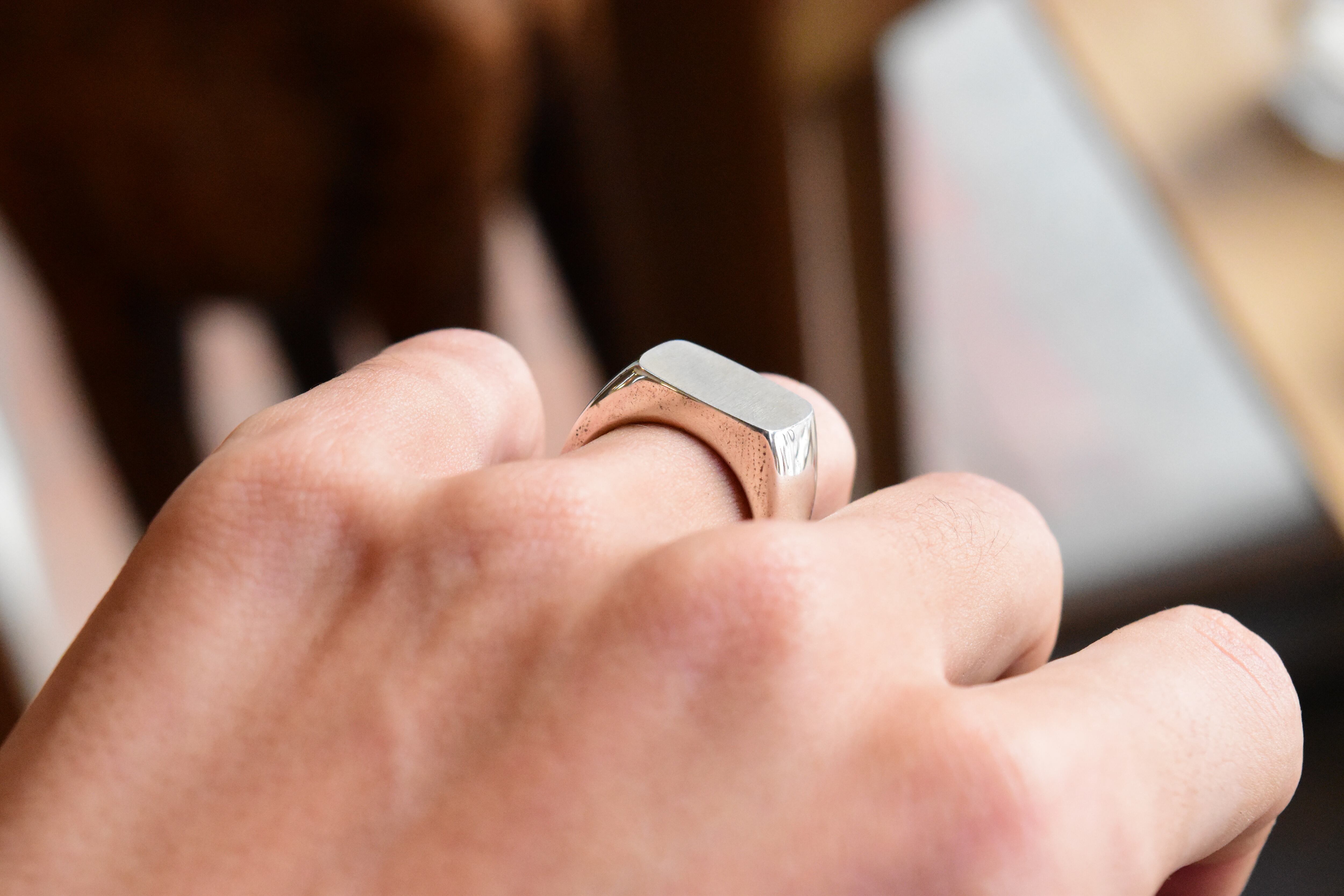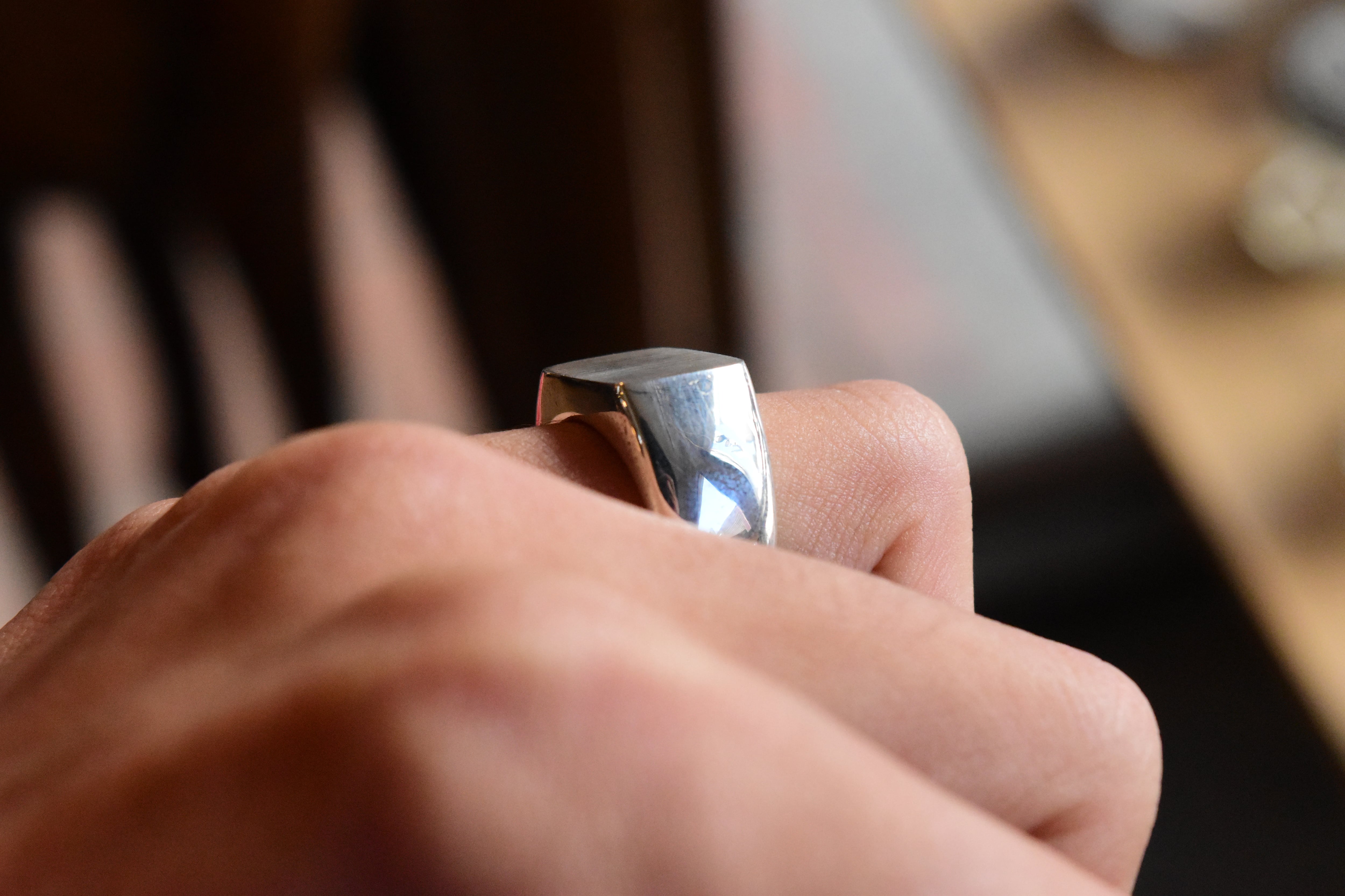 非常に重厚感のある印台リングですが、すっきりしたボディと綺麗なフォルムが優秀です