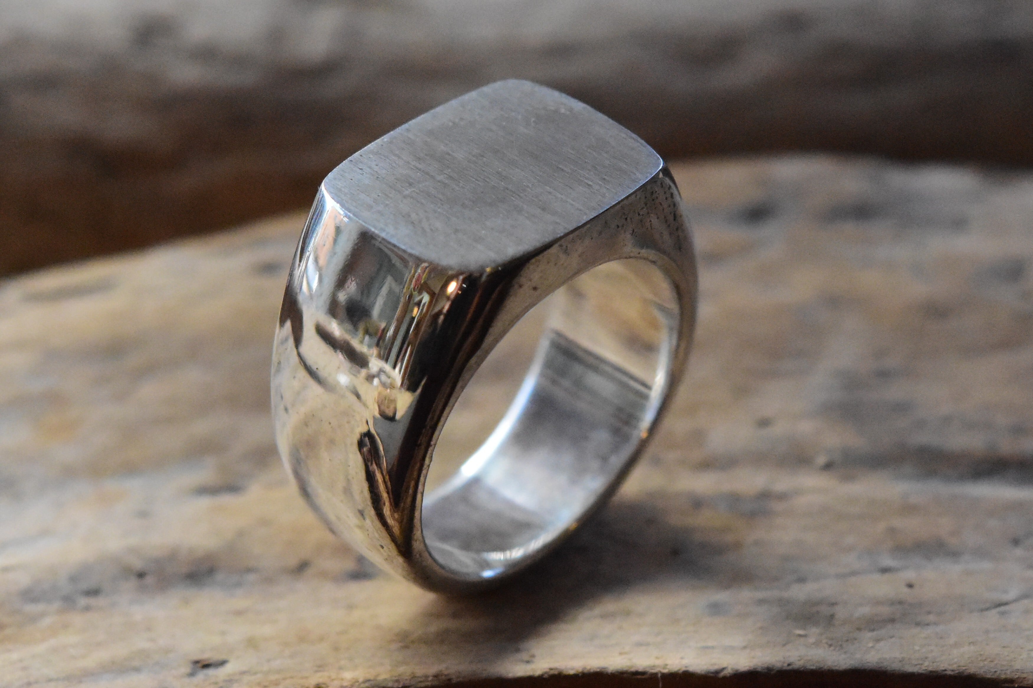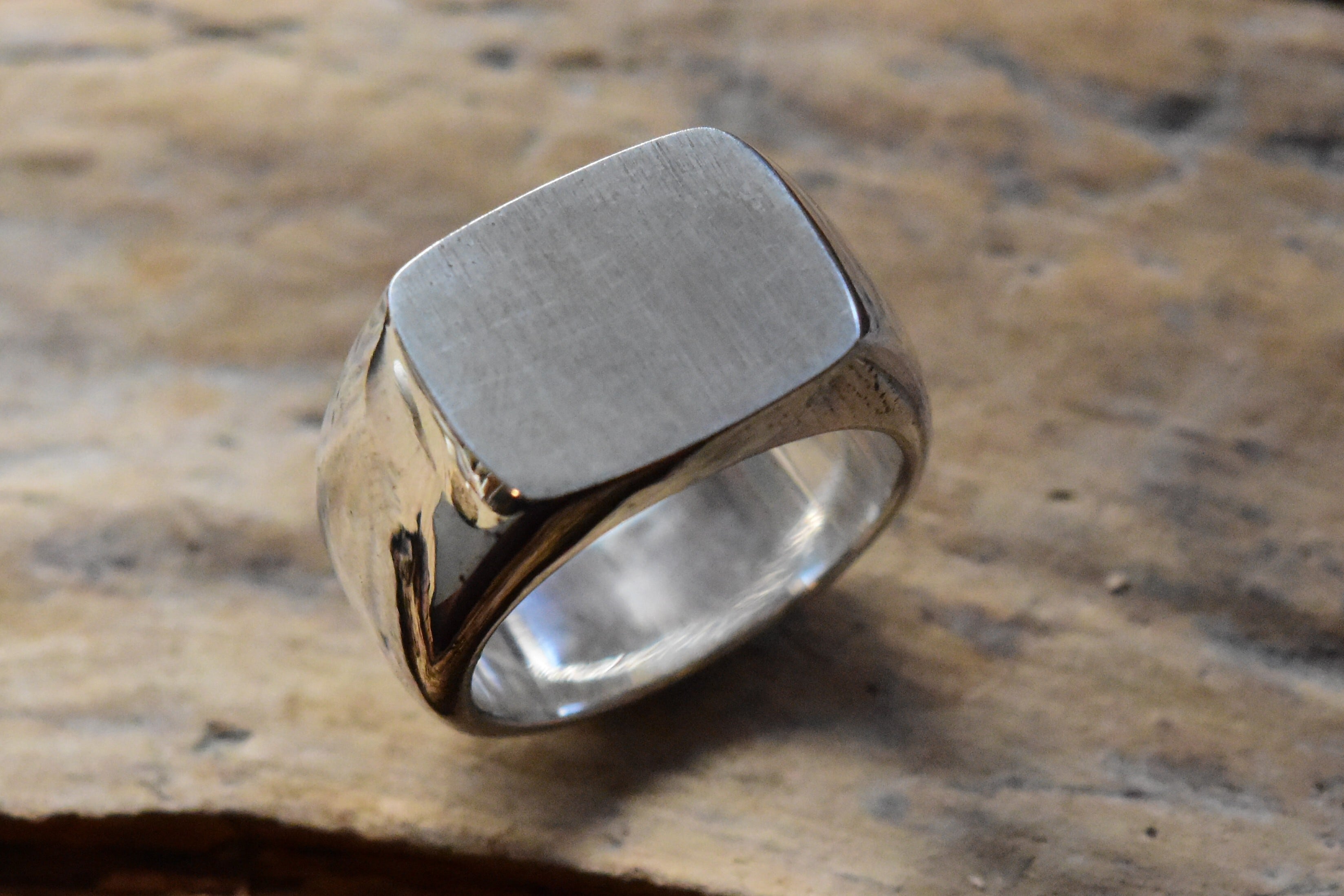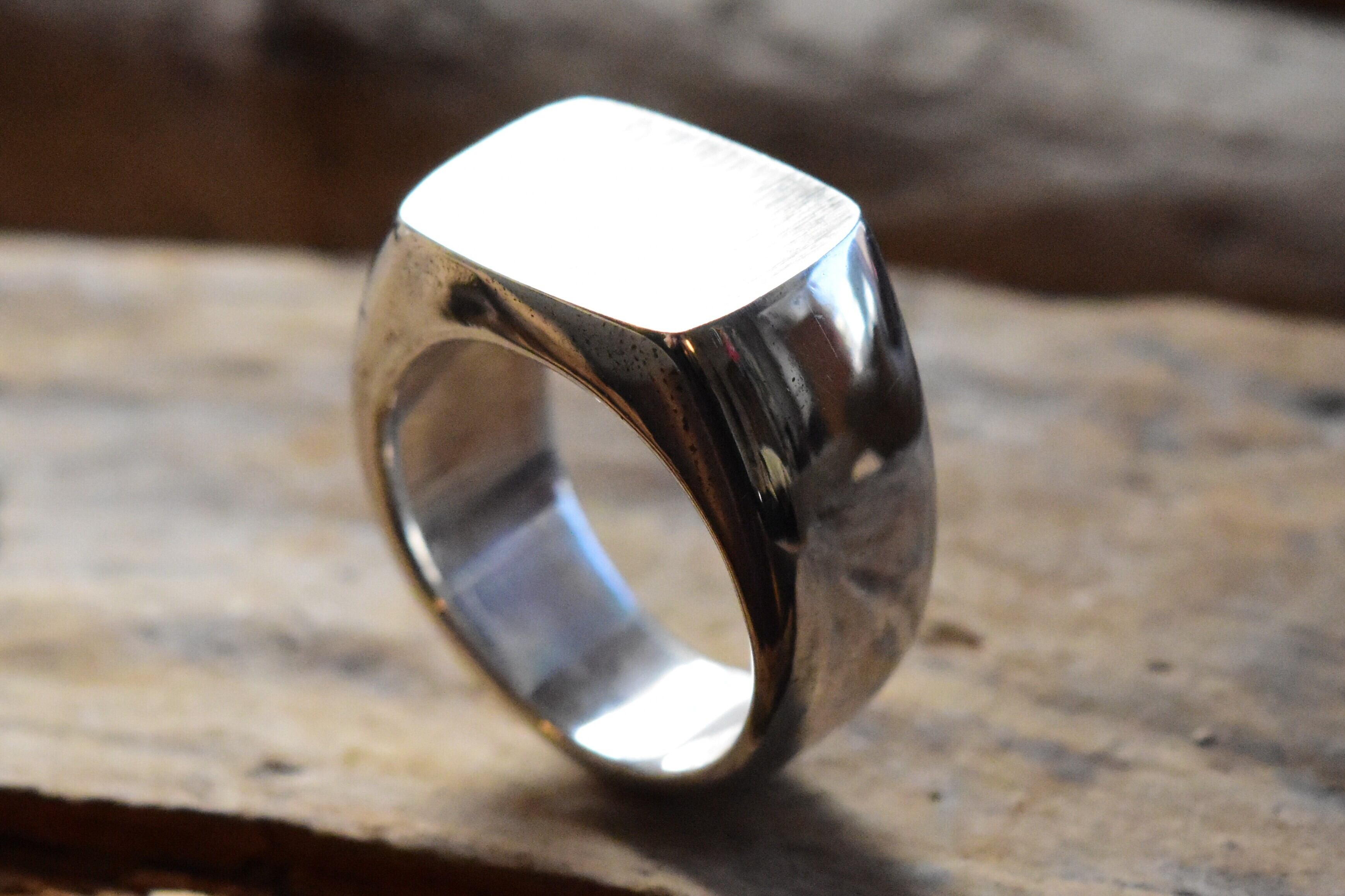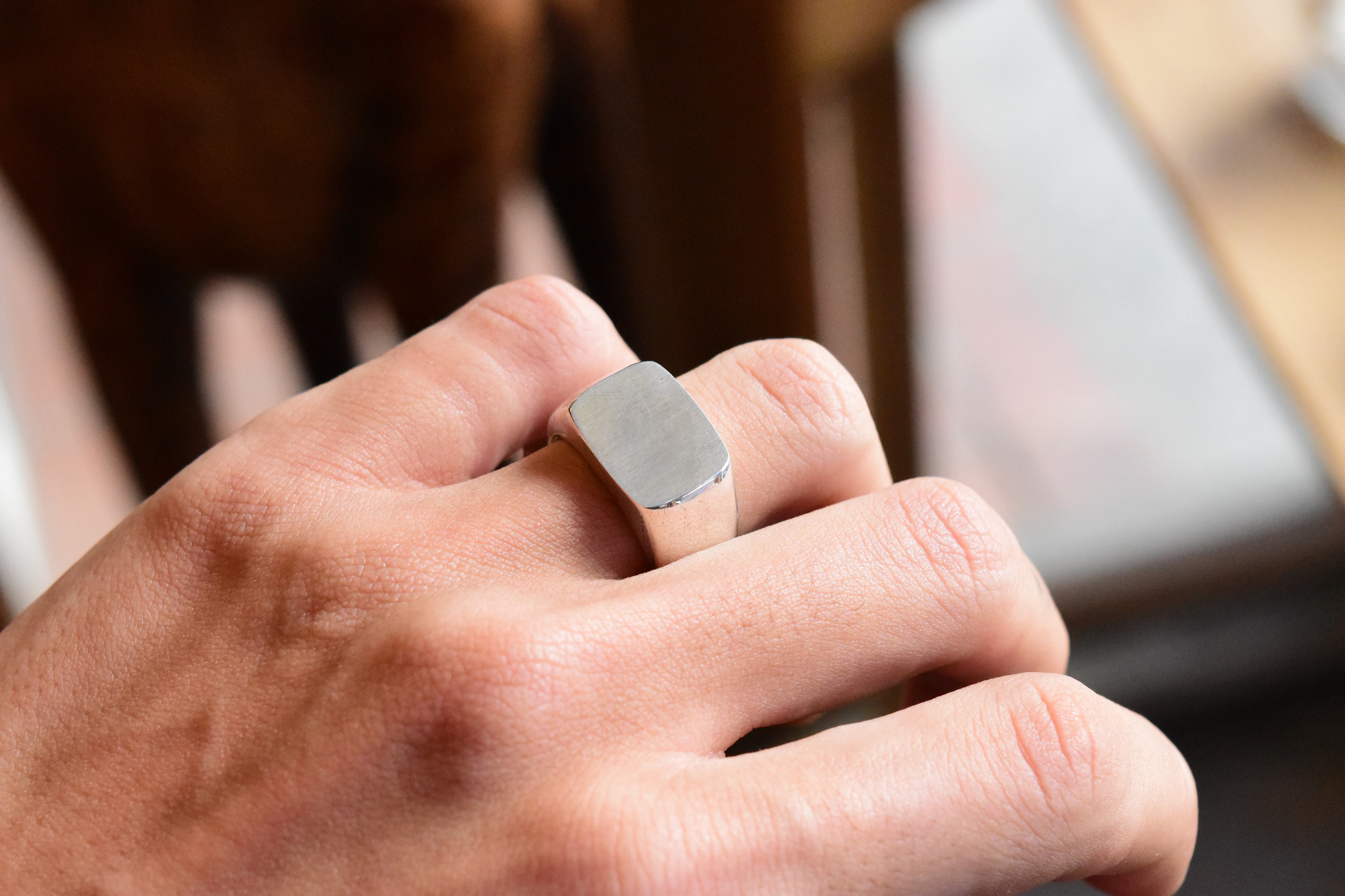 この印台リングは、丁寧に仕上げられた滑らかな表面が特徴です。シルバー925の上品な輝きが、指にしっくりとなじみ、快適な着用感です。