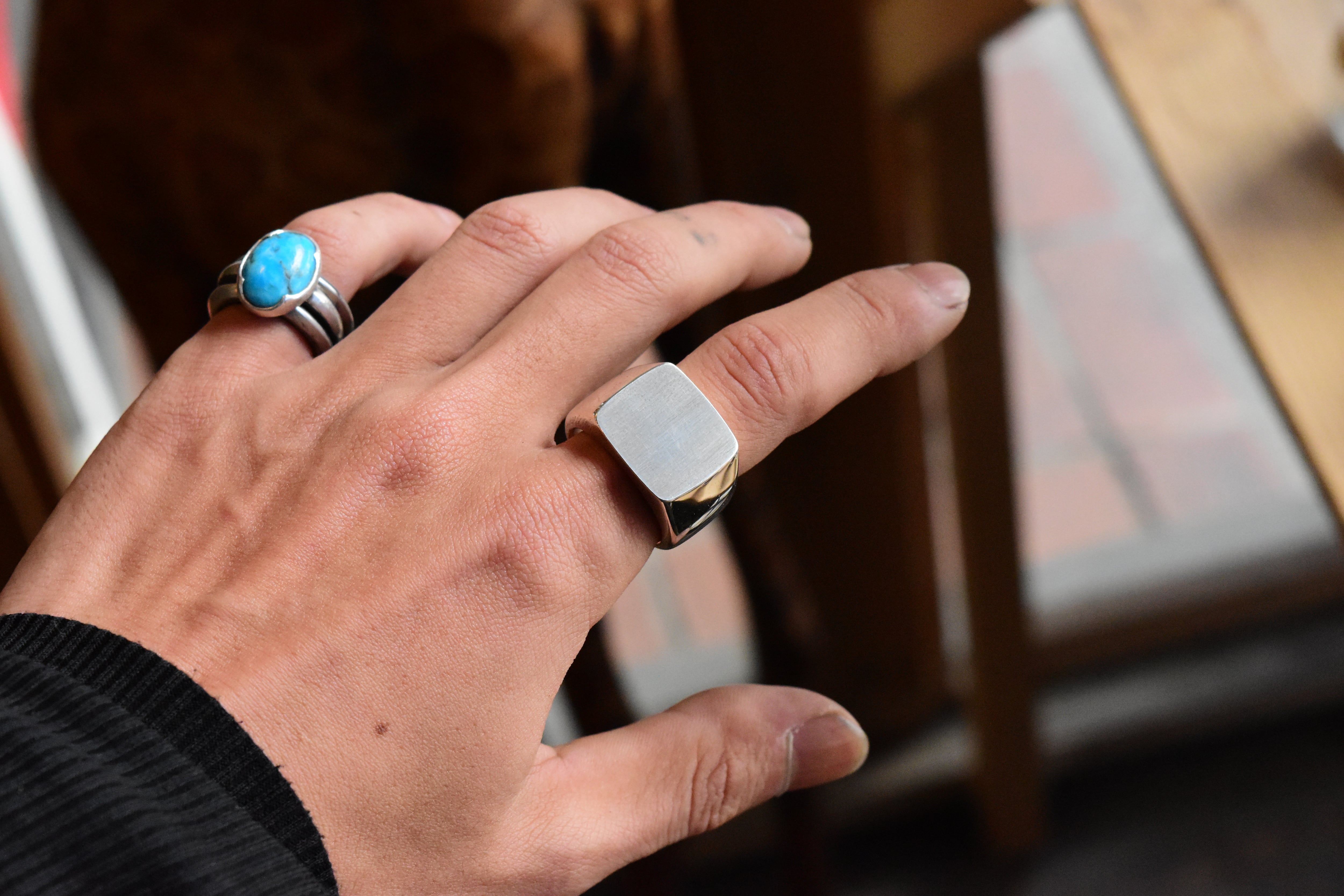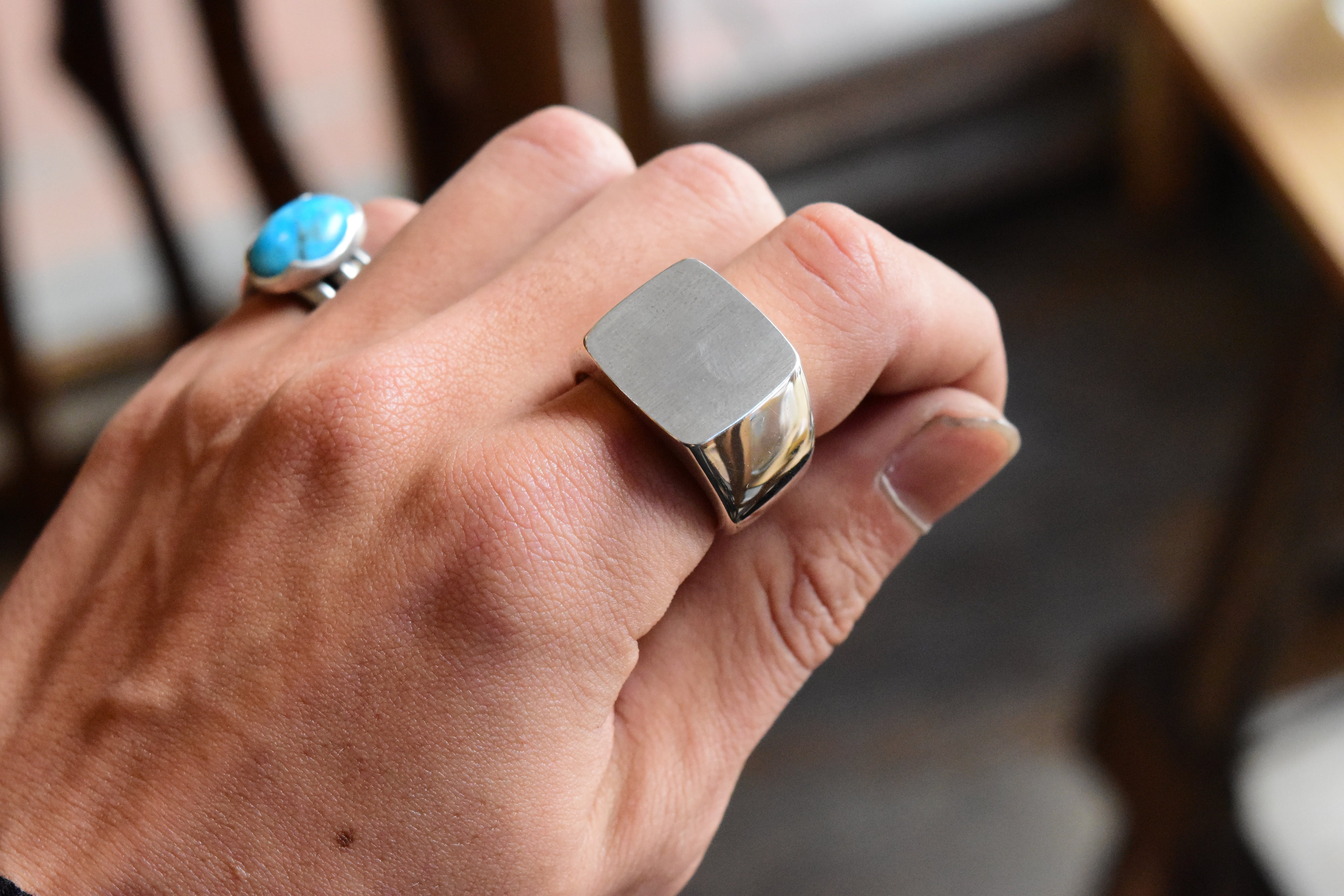 印台リングは、シンプルでありながら大ぶりな存在感を放ちます。このリングは、持つ人のスタイルを引き立て、日常使いにも特別な場面にもぴったりです!一つ一つが丁寧に作られており、シンプルながらも飽きの来ない魅力を持っています。