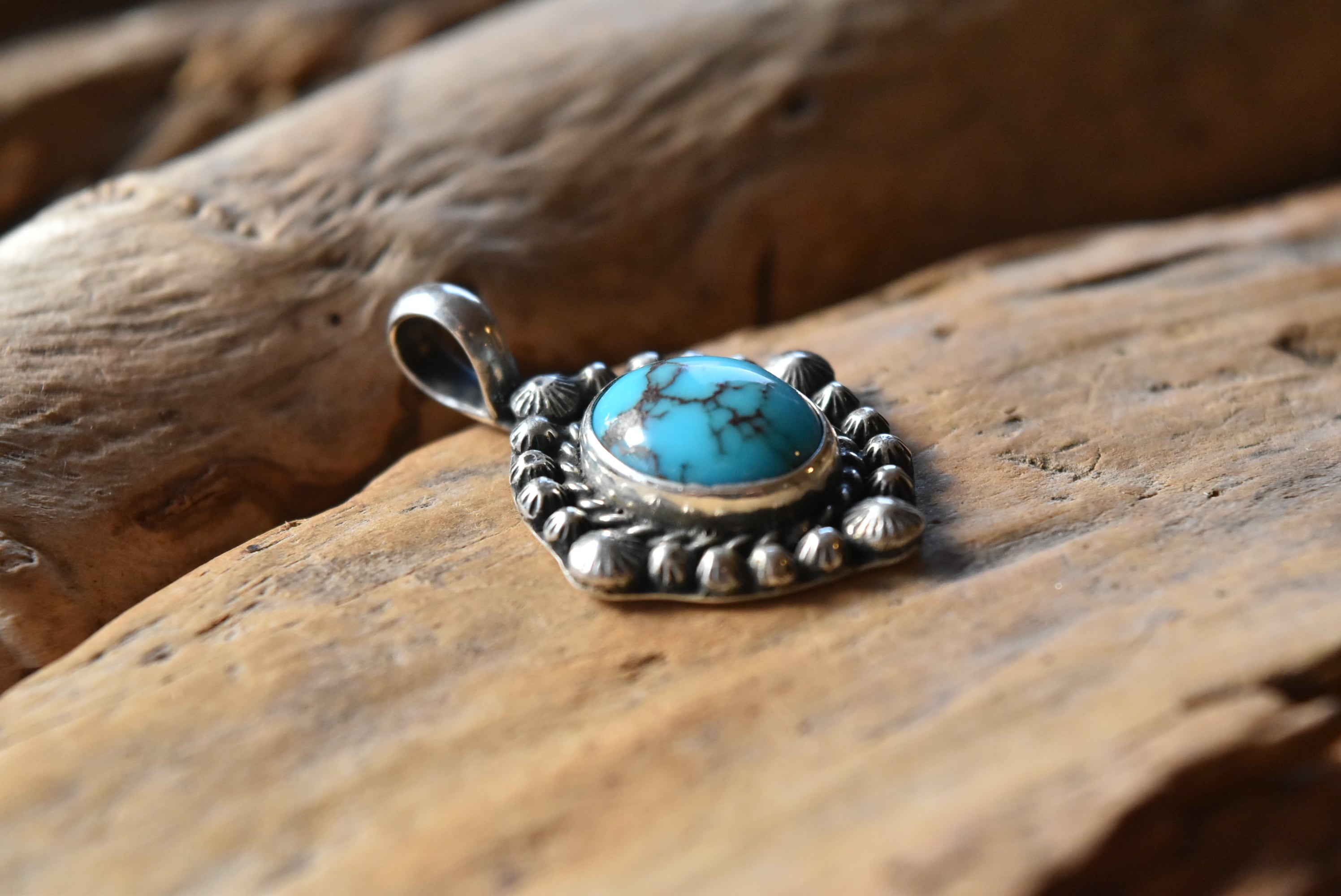 このペンダントのデザインは、アポロパーツを配置したユニークな仕上がりが特徴で、シンプルでありながら存在感があります。エジプシャンターコイズの魅力を存分に味わいながら、自分自身を更に引き立てるアイテムとしてご利用ください。