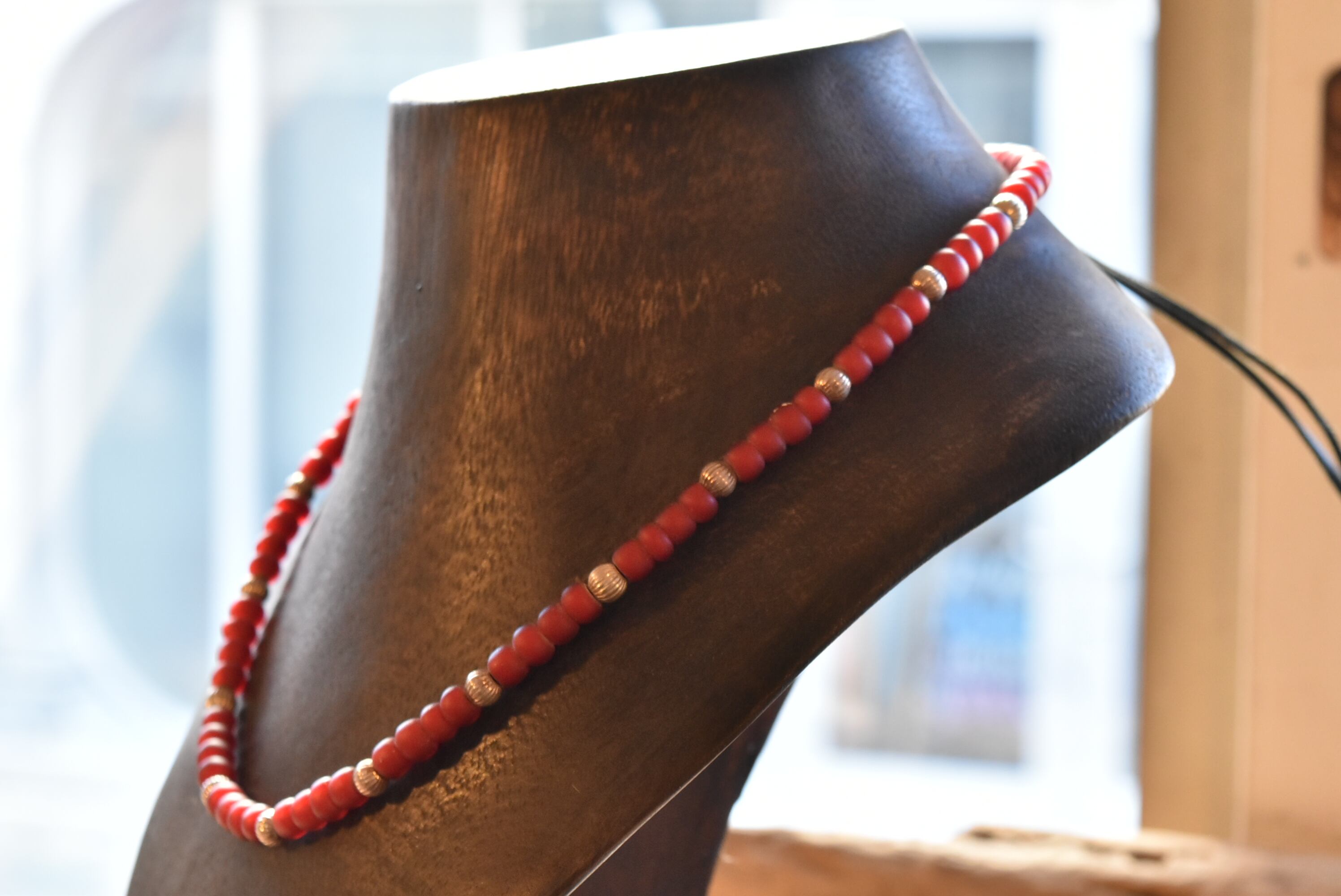美しいホワイトハーツとシルバービーズが織り成す、エレガントで洗練されたデザインは、特別な瞬間を彩るのにぴったりなアイテムです。マットな赤と輝くシルバーのコントラストが、着ける人の魅力を引き立てます。