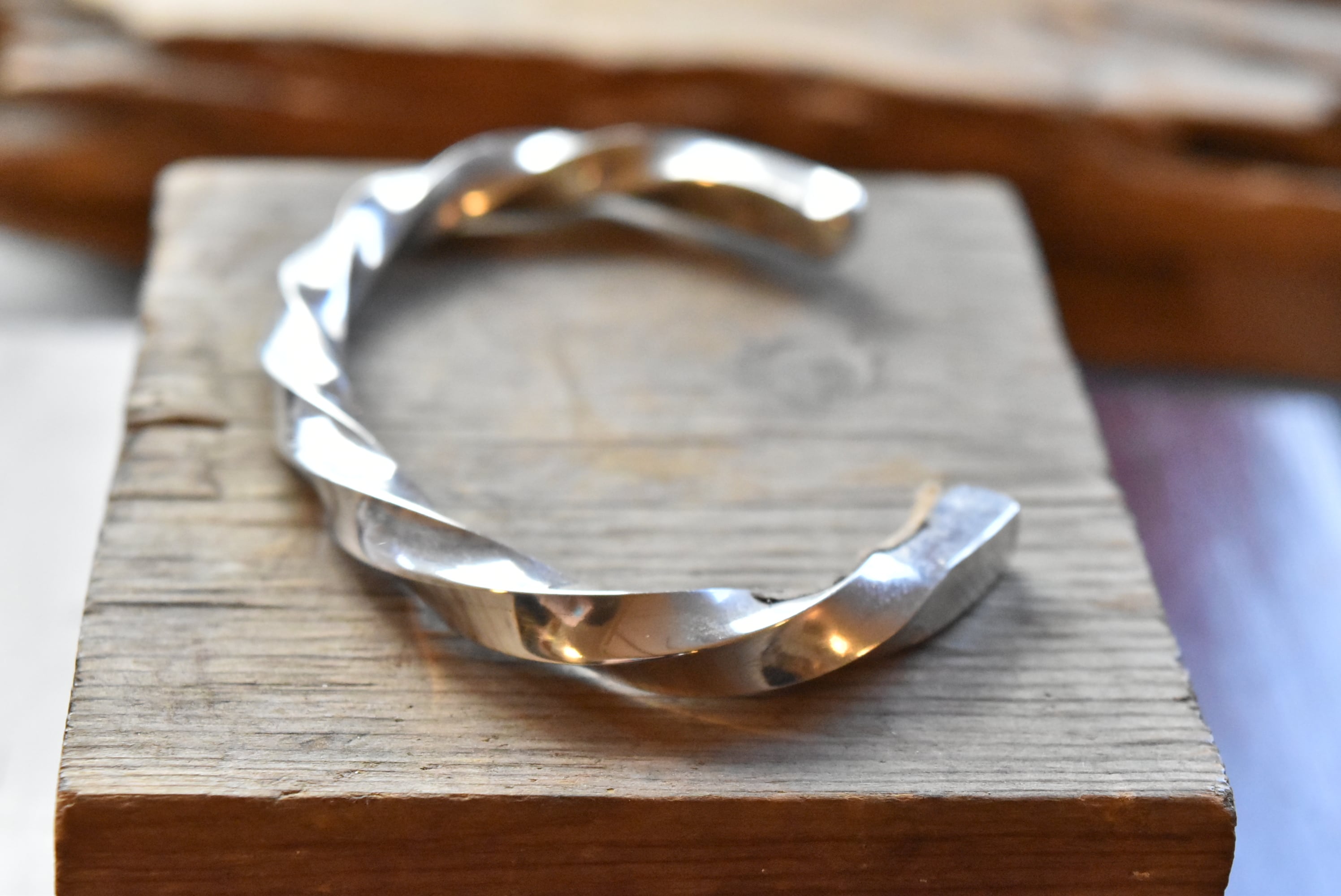 独自のツイストデザインが魅力的なこのバングルは、シンプルながらも存在感のあるアイテムです。どんなスタイルにも合わせやすく、普段使いはもちろん特別なシーンでも活躍します。